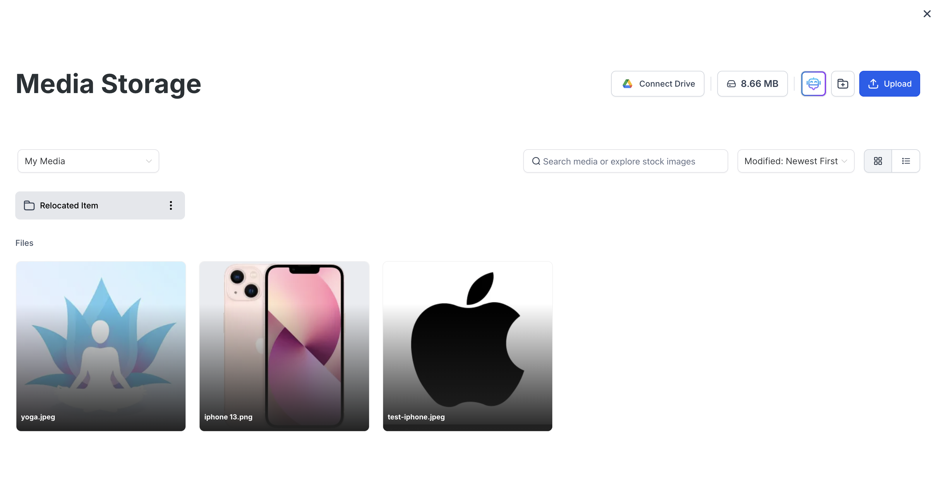 Click the icon to upload files from your device.