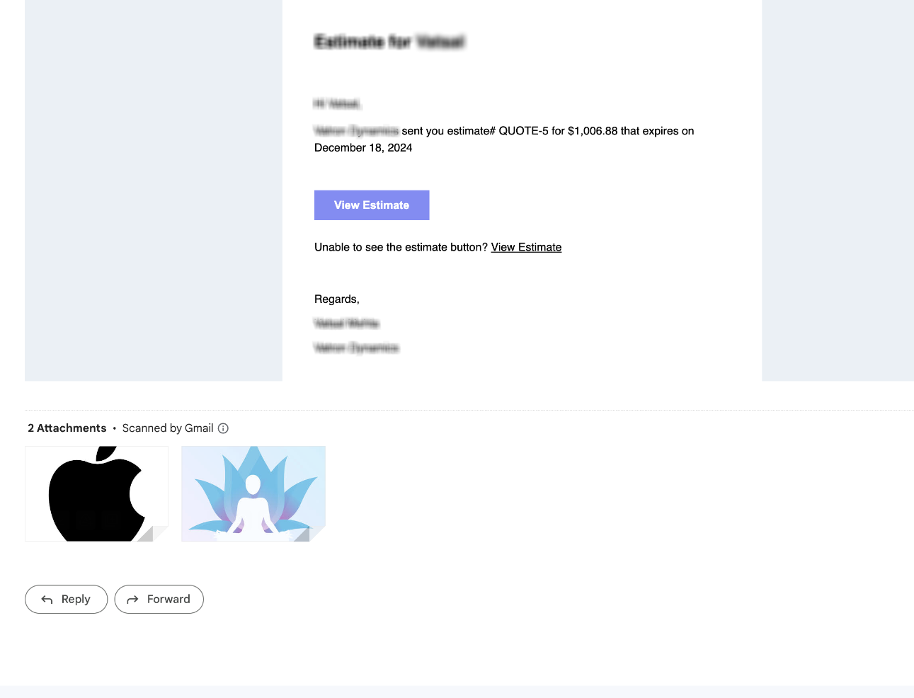 Attachments are only sent when the estimate is emailed for the first time, not in scheduled follow-up emails.